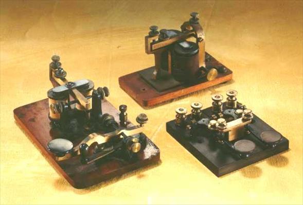 All from Bunnell (U.S.): a KOB ("Key On Board"), a sounder, and a rare double key (for submarine cable communication). 5-3-4