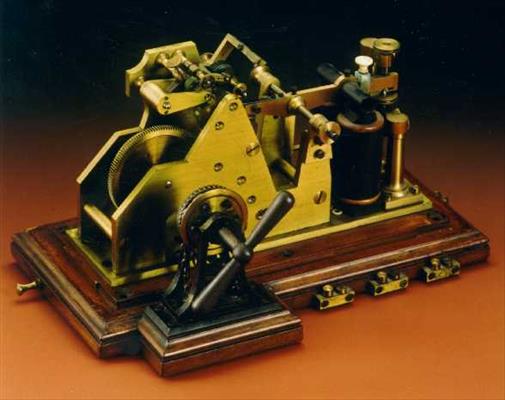 Very early weight driven Siemens Morse receiver. Built in 1853 as an embosser and transformed in 1859 by Caminada Holland into an inkwriter. 5