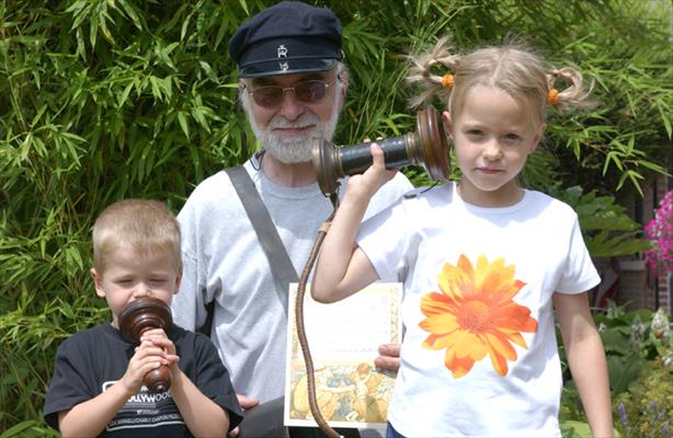 Jonas is speaking through the first commercial model of Graham Bell's telephone of 1877. Lisa is listening via the first Siemens & Halske telephone of 1878. I am the telegram deliverer...3